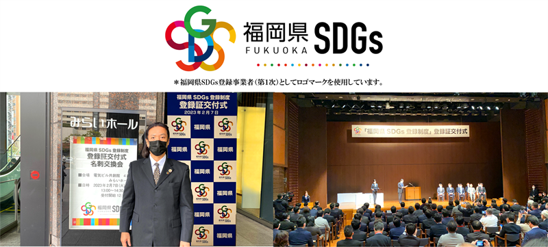 「福岡県SDGs登録事業者(第1次)」、「北九州SDGs登録事業者(第1次)」として登録されています。
