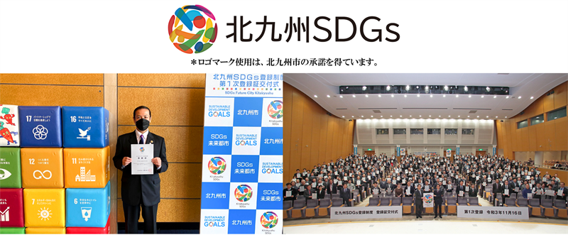 「福岡県SDGs登録事業者(第1次)」、「北九州SDGs登録事業者(第1次)」として登録されています。
